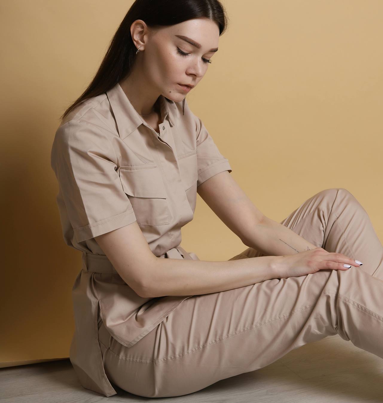 - Leinen und Kaschmir: Stellen Sie sich einen perfekt geschnittenen Leinen-Jumpsuit in einem warmen Khaki-Ton für den Sommer oder einen Kaschmirpullover in einem ähnlichen Ton für kühlere Tage vor. Diese Materialien strahlen Luxus aus.
